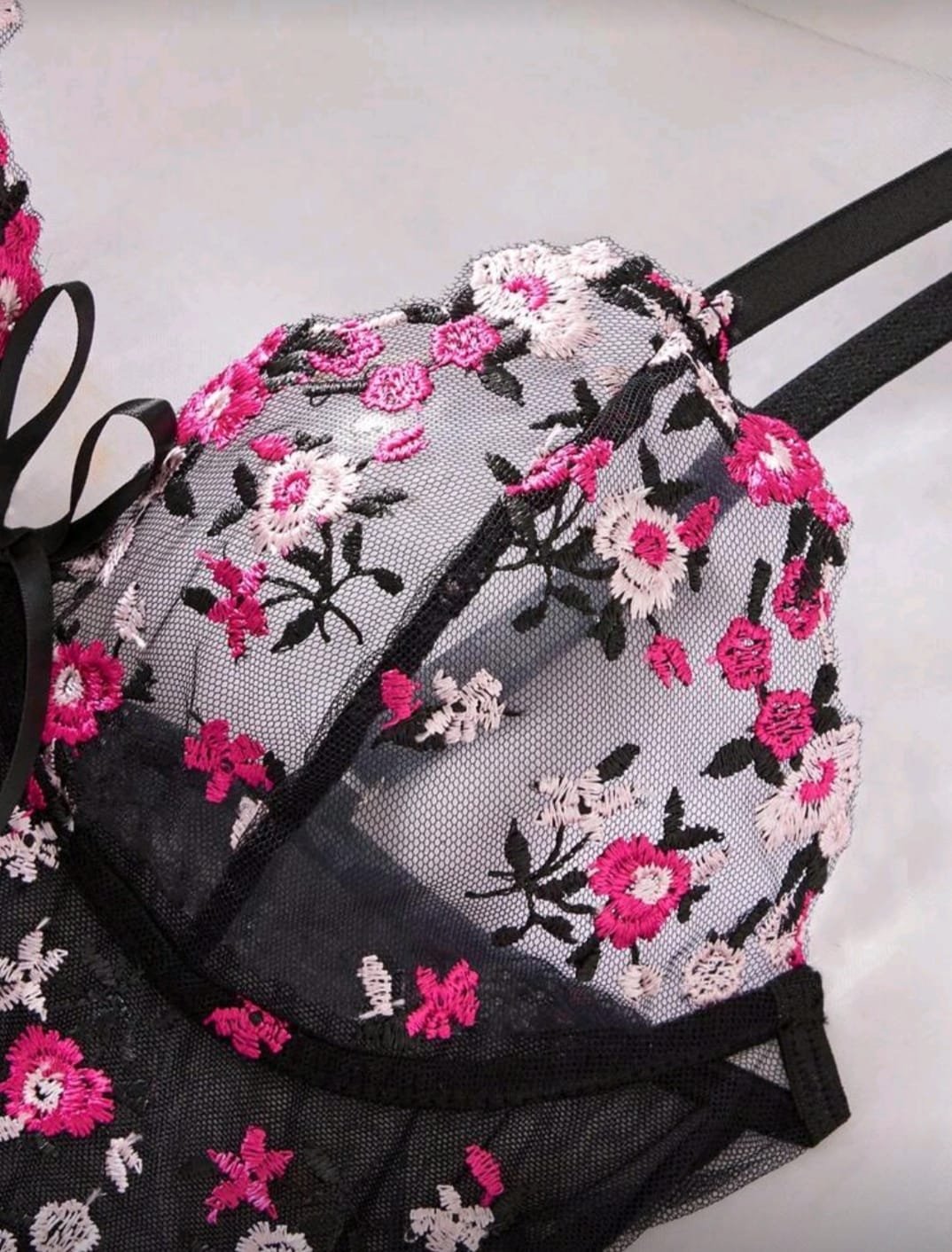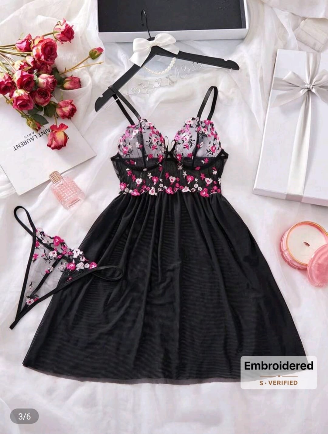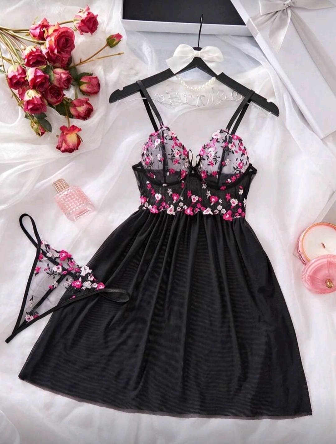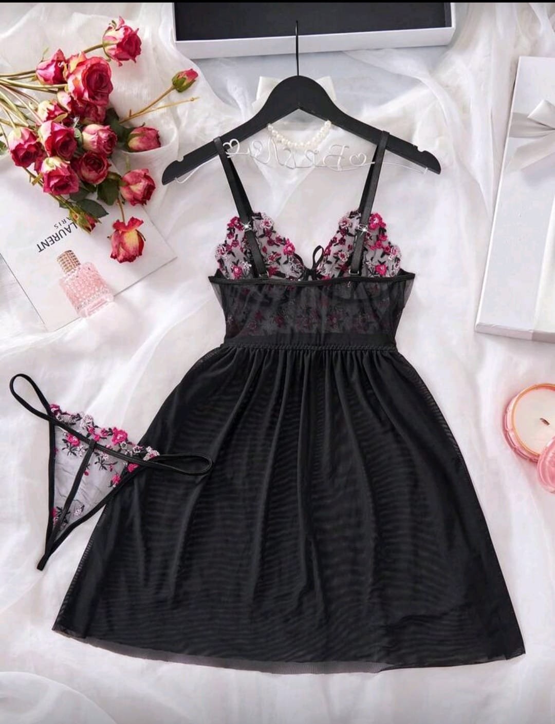 + Free Shippingقميص نوم نسائي شفاف مثير بلون موحد من الدانتيل الشبكي المتباين