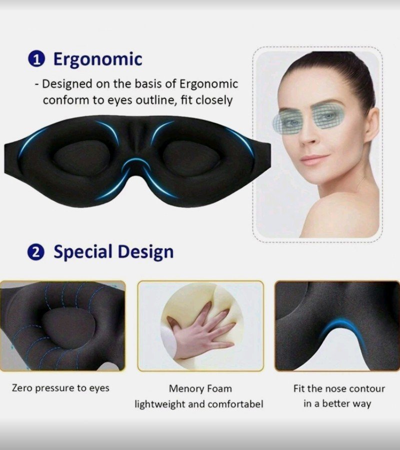 قناع عيون ثلاثي الأبعاد خفيف الوزن لحجب الضوء – مثالي لمساعدة النوم، مناسب للسفر، القيلولة والراحة الليلية، مريح ومحمول