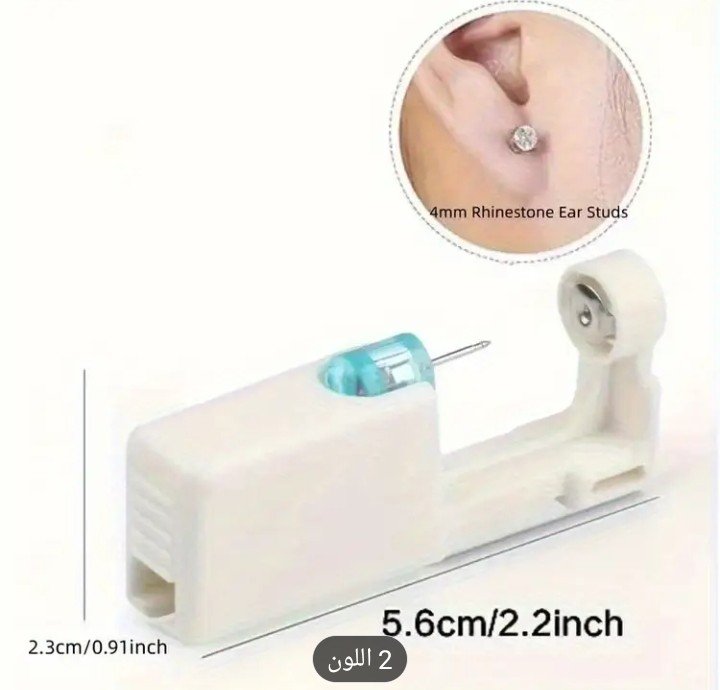 مجموعة من 2 طقم ثقب الأذن تتميز بأقراط مثبتة مسبقًا، أداة مسدس الأذن السريعة وغير المؤلمة، أقراط أمان، وسادات كحول، وإكسسوارات وجه خالية من العطور والبطاريات.