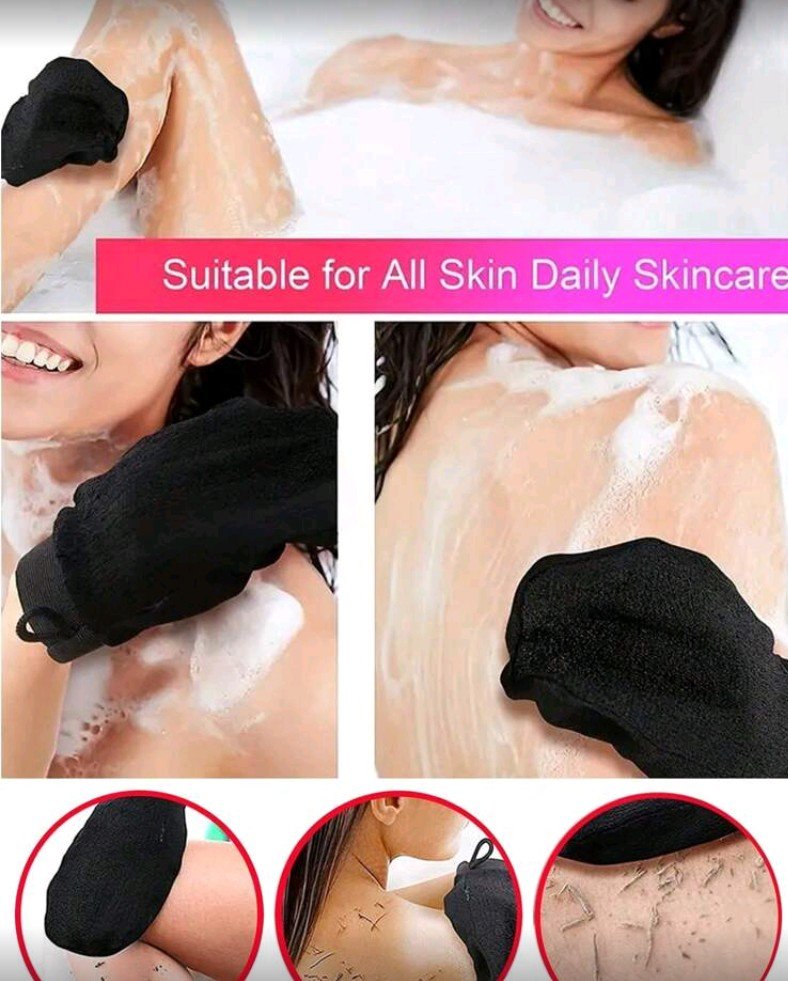 + Free Shipping1 قفاز تنظيف أسود، قفاز حمام مرن ذو طبقة واحدة ومزدوج الجوانب ومحكم الإغلاق