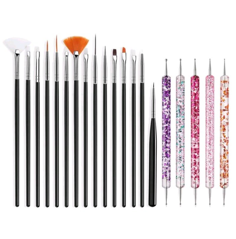 + Free Shippingمجموعة 20 فرشاة فن الأظافر، أدوات تصميم الأظافر، فرشاة غبار الأظافر، قلم رسم للأظافر