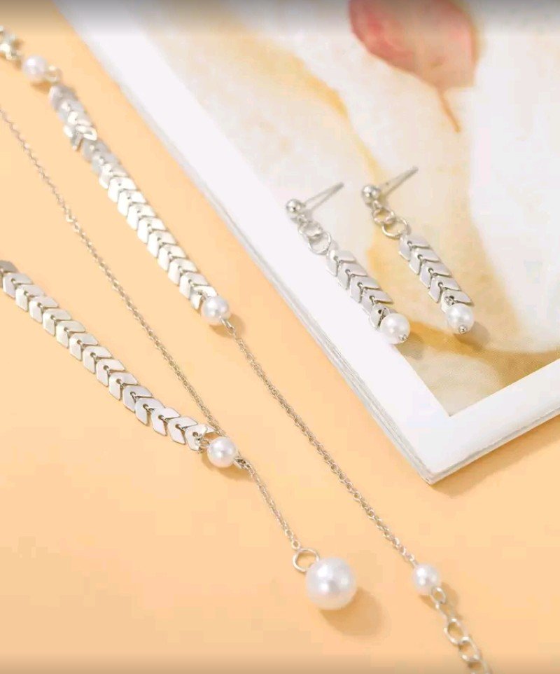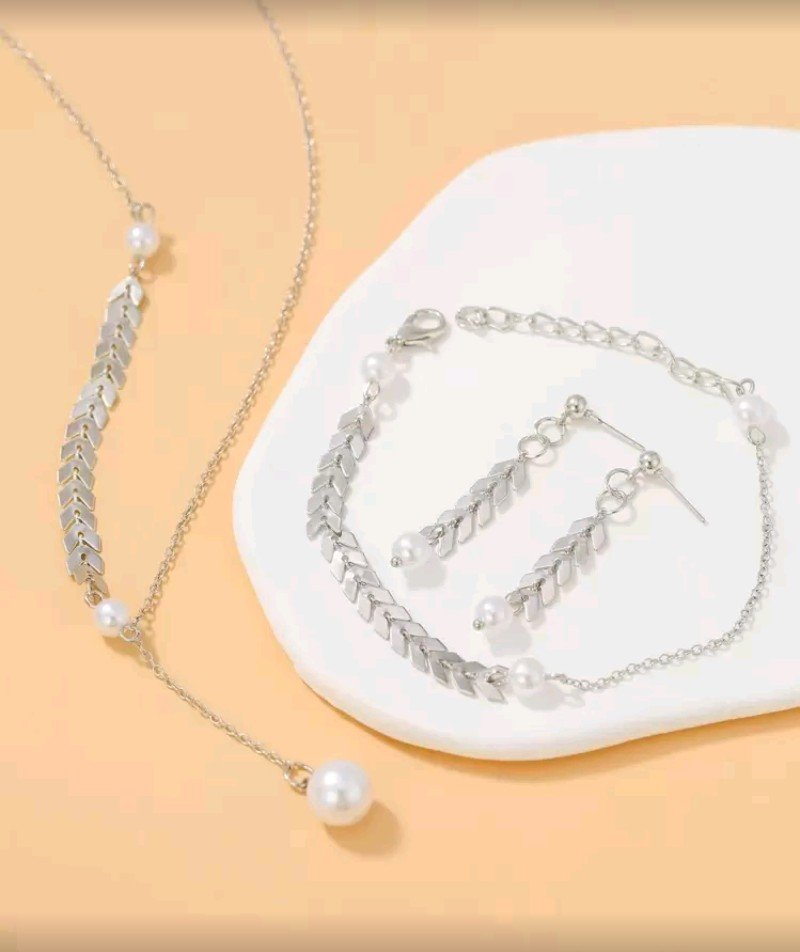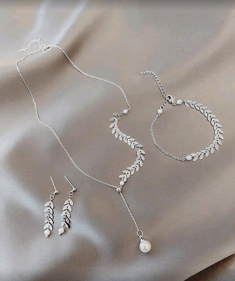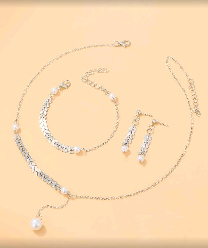 + Free Shipping3 قطع مجموعة قلادة قمح مينيمالية عصرية مع سلسلة عريضة قابلة للتعديل، قلادة، سوار، وأقراط