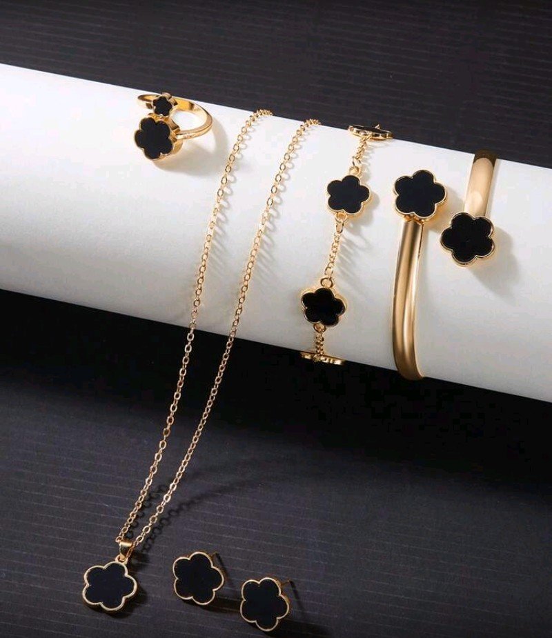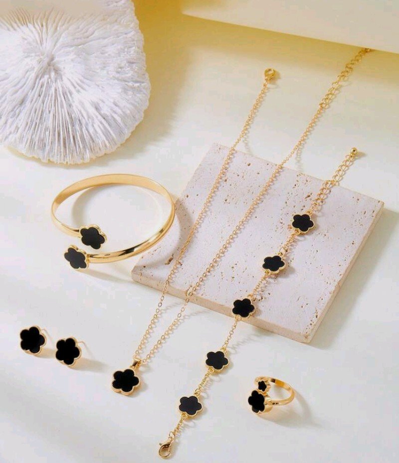 6 قطع من المجوهرات الرائعة: قلادة + خاتم + سوار + أقراط بتصميم زهور البرسيم والبتلات، مثالية لأعياد الميلاد وحفلات الزفاف وعيد الحب والحفلات