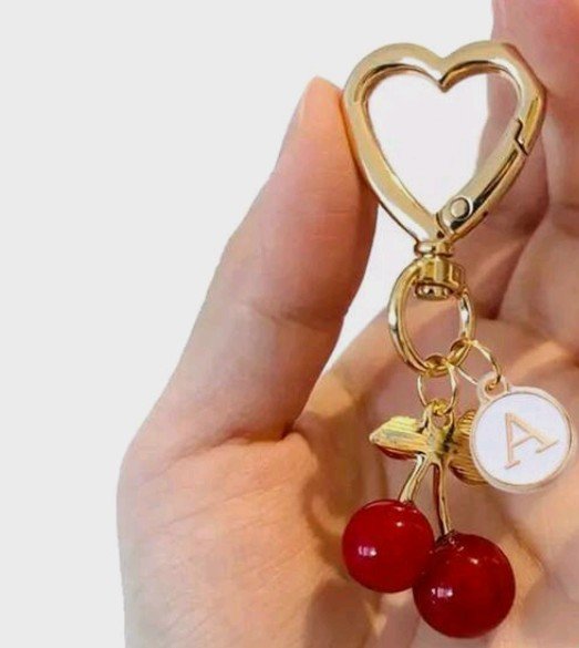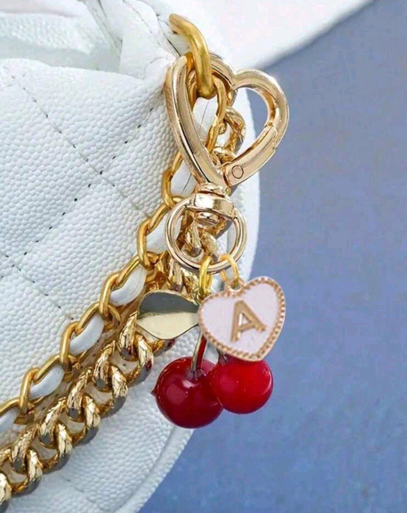 سلسلة مفاتيح لطيفة وأنيقة وعالية الجودة على شكل كرز – تعليقة حقيبة كرز رائعة – حلقة مفاتيح كرز بمشبك على شكل قلب لتزيين حقيبة الظهر العصرية.مع حرف A