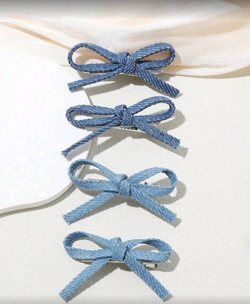 4 قطع من مشابك الشعر البسيطة والأنيقة من الدنيم مع قوس للنساء – مشابك جانبية وباريتات متعددة الاستخدامات من الأزرق الداكن إلى الأزرق الفاتح، مثالية للارتداء اليومي وحفلات أعياد الميلاد، إكسسوارات لطيفة