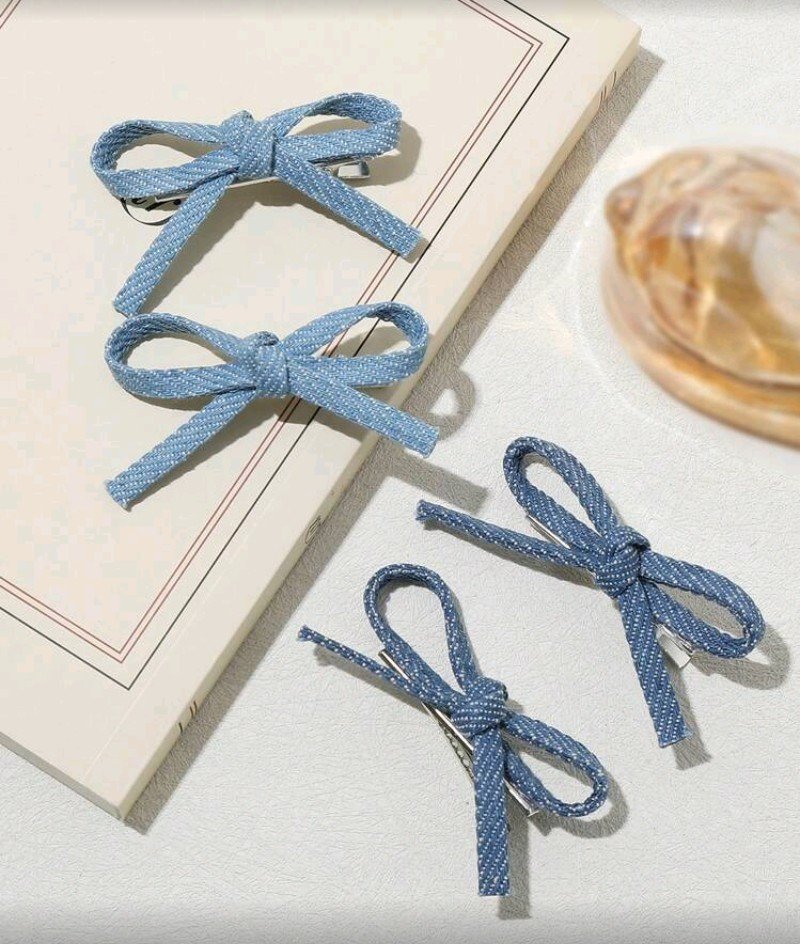 + Free Shipping4 قطع من مشابك الشعر البسيطة والأنيقة من الدنيم مع قوس للنساء – مشابك جانبية وباريتات متعددة الاستخدامات من الأزرق الداكن إلى الأزرق الفاتح، مثالية للارتداء اليومي وحفلات أعياد الميلاد، إكسسوارات لطيفة
