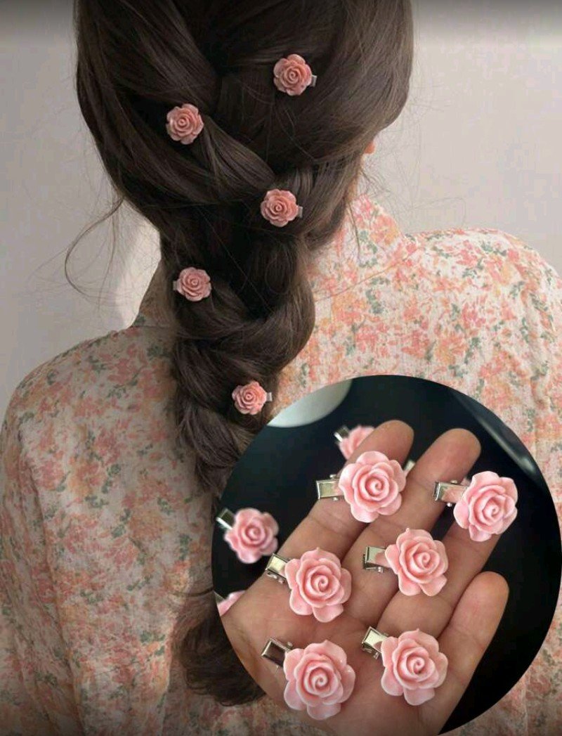 مشابك شعر بالورد الصناعي باللون الزهري الصلب 10 قطع