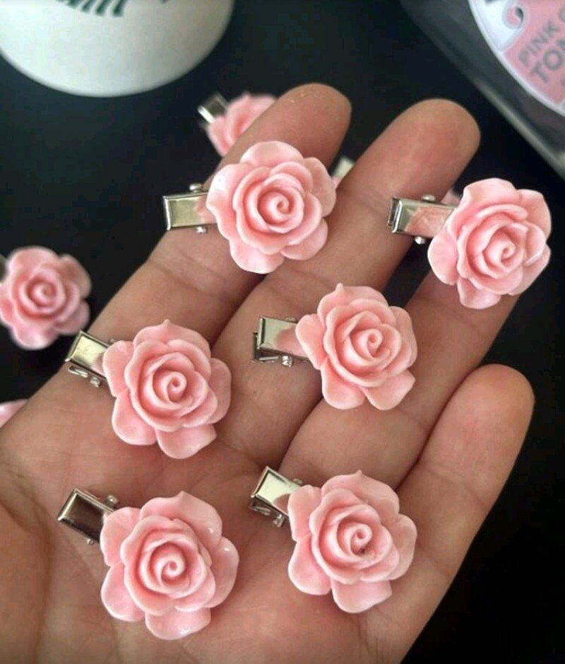 + Free Shippingمشابك شعر بالورد الصناعي باللون الزهري الصلب 10 قطع