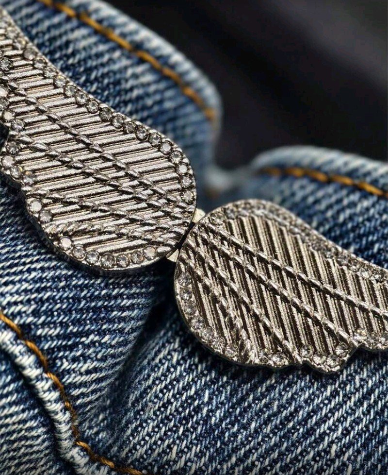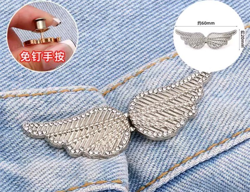 سلسلة الراين: مشبك ضيق الخصر على شكل جناح – مزود بمشبك معدني أنيق قابل للفصل، مثالي لشد البناطيل. هدية مميزة للمهرجانات النسائية