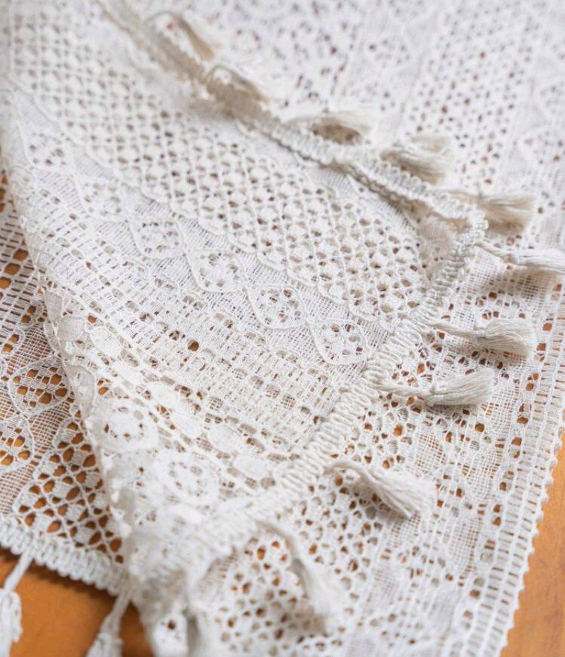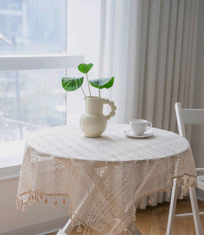 قطعة واحدة من مفرش طاولة من الدانتيل البيج مع شراشيب، تصميم مربع مقطوع، مناسب للخزائن، طاولات الطعام، وطاولات الشاي.