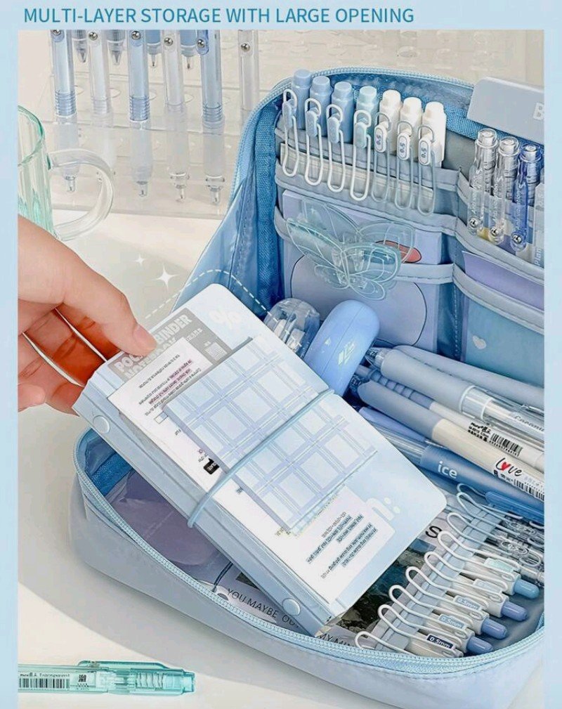 + Free Shippingحقيبة أقلام هدية للعودة إلى المدرسة، حقيبة أدوات مكتبية متعددة الطبقات لتنظيم المكتب، تخزين مكياج واسع وحقيبة تجميل محمولة – مثالية للاستخدام في المكتب والمنزل
