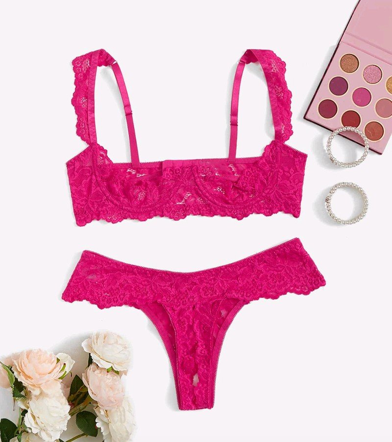 + Free Shippingطقم ملابس داخلية لاسلكية من الدانتيل الشفاف يتضمن تانك توب وحمالة صدر وثونج