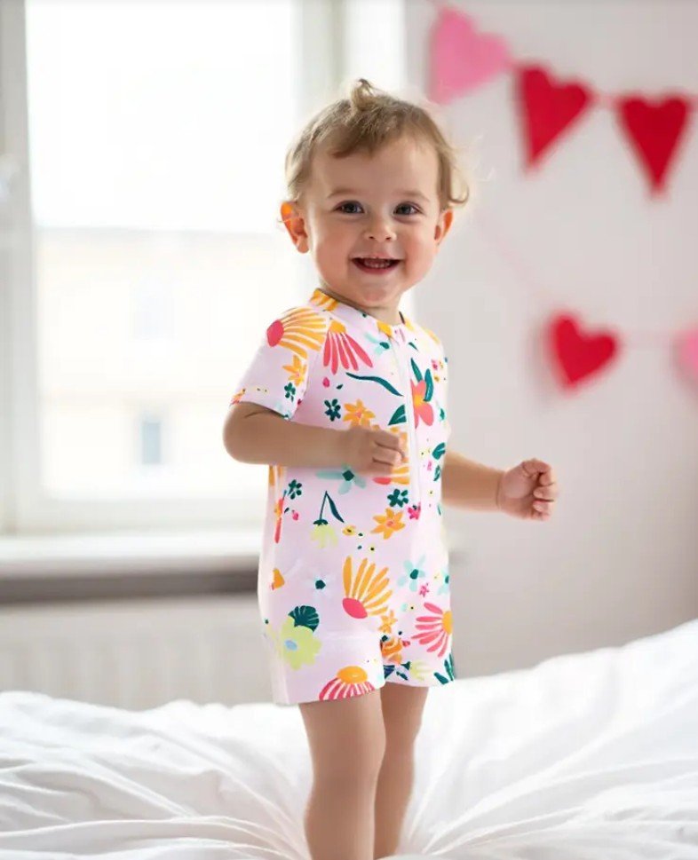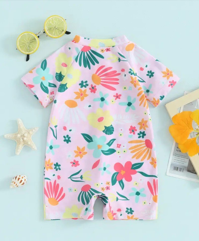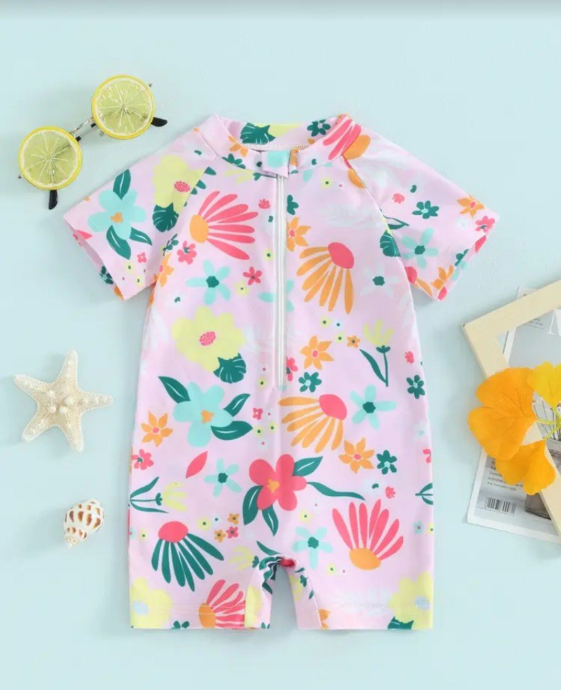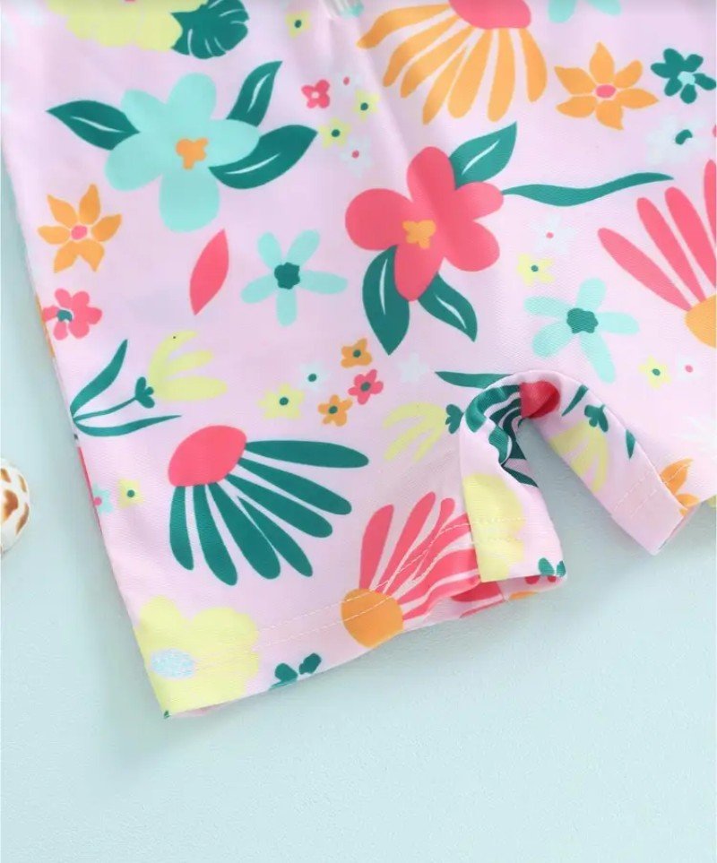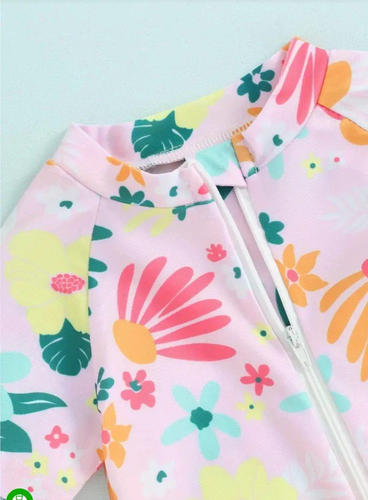 ملابس سباحه للبنات الصغيرات بطبعة زهور وسحاب نصف مفتوح للاطفال