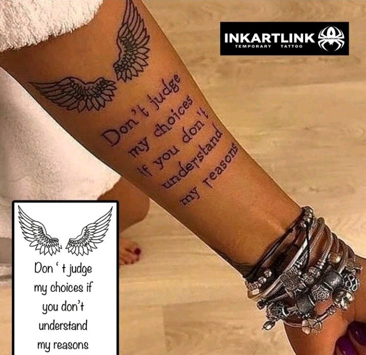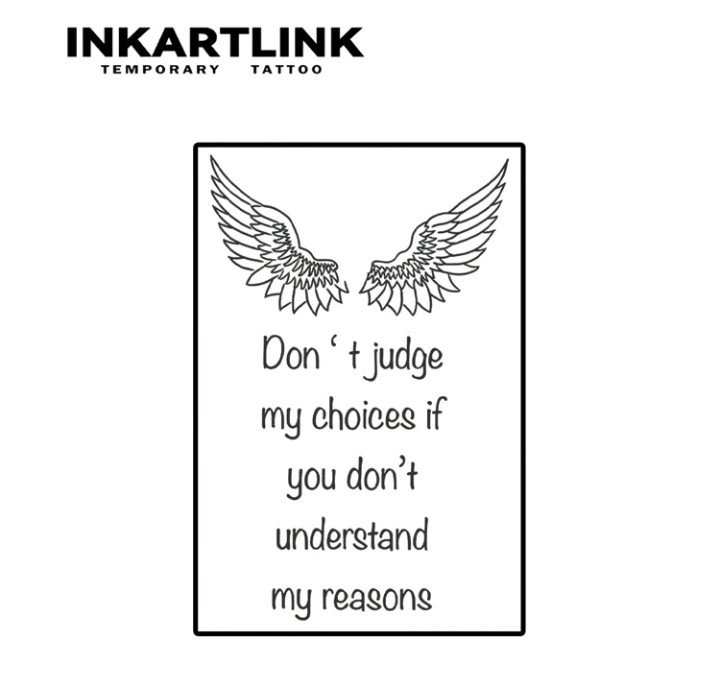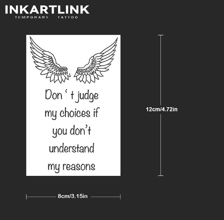 ملصقات وشم نصف دائمة من INKARTLINK بتصميم جناح – مقاومة للماء، تصميم اقتباس إنجليزي واقعي مع رسالة تحفيزية “لا تحكم على اختياراتي إذا لم تفهم أسبابي” – مظهر وشم مؤقت ووهمي، حبر نباتي، شكل مستطيل، لوازم الوشم