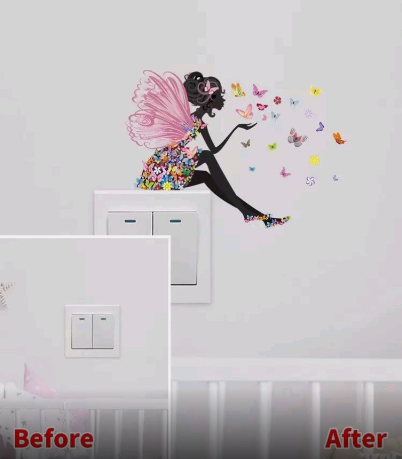 ملصق حائط ذاتي اللصق من مادة PVC لمفتاح كهربائي، ملصق حائط مبتكر بنمط فراشة فتاة لتزيين مفتاح مقبس كهربائي، ملصقات، ملصق حائط، ملصق فينيل لتزيين المنزل، عناصر زينة ربيعية لتجديد منزلك، ملصقات زينة راما هدايا أعياد الميلاد والتخرج
