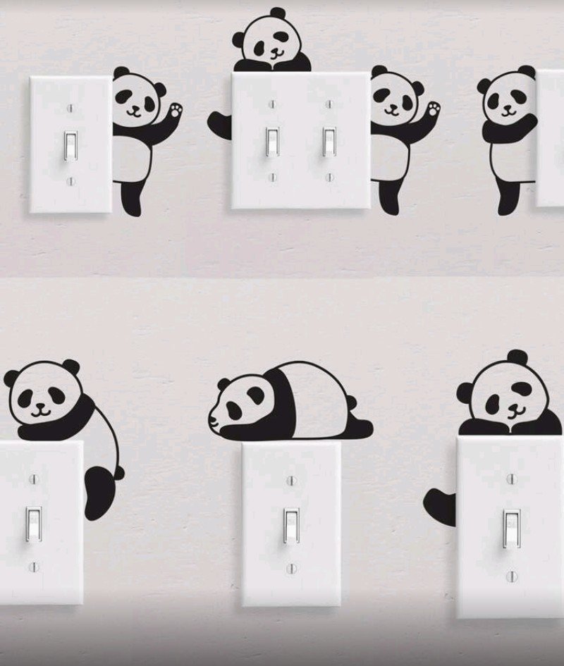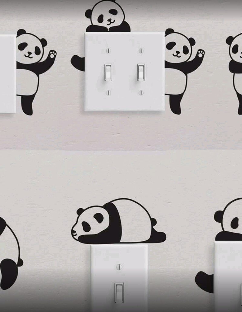 + Free Shippingملصق مفصل للتشغيل والإيقاف بتصميم فريد من نوع Panda الأسود على شكل حيوان جميل للاستخدام على الحائط، مناسب للاستخدام في المنزل