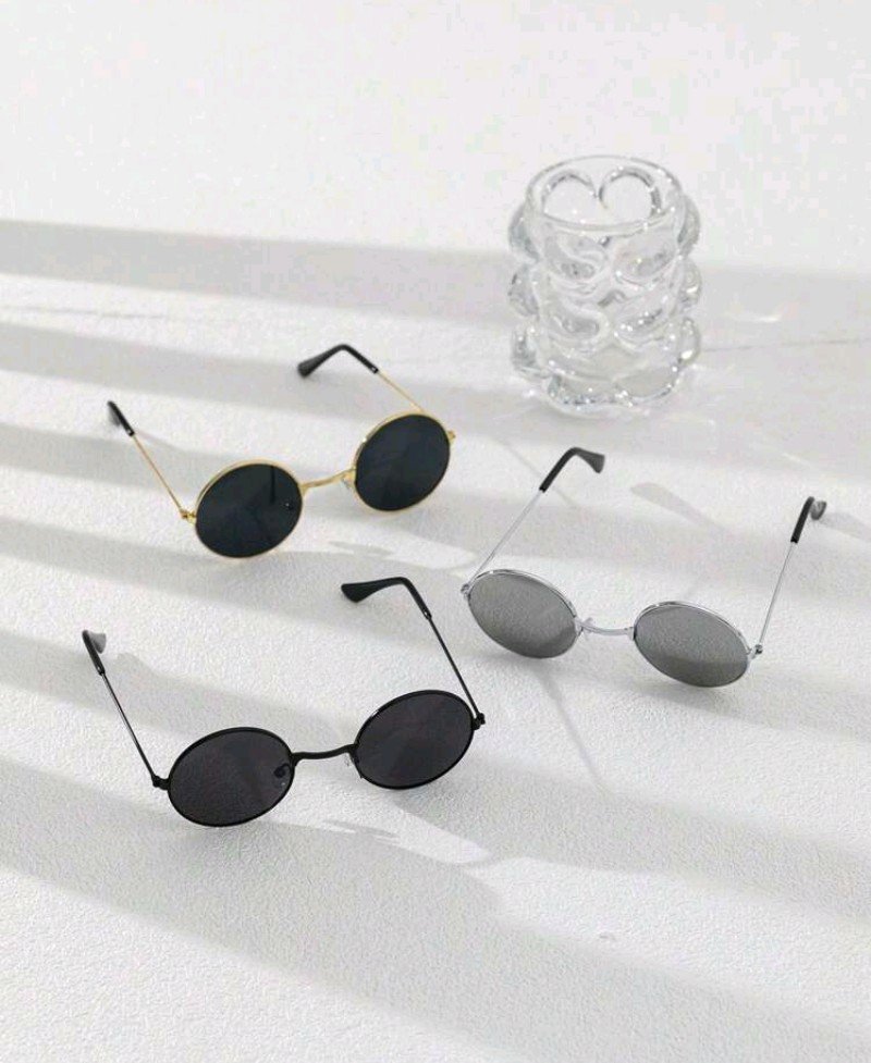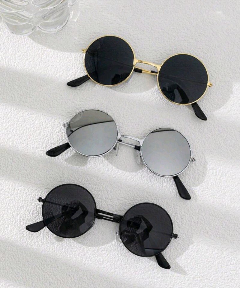 3 نظارات إطار معدني أسود مع تشطيب ذهبي للأطفال، خفيفة الوزن وقليلة الحساسية، مناسبة للمدرسة وحفلات الأزياء والهدايا العيدية