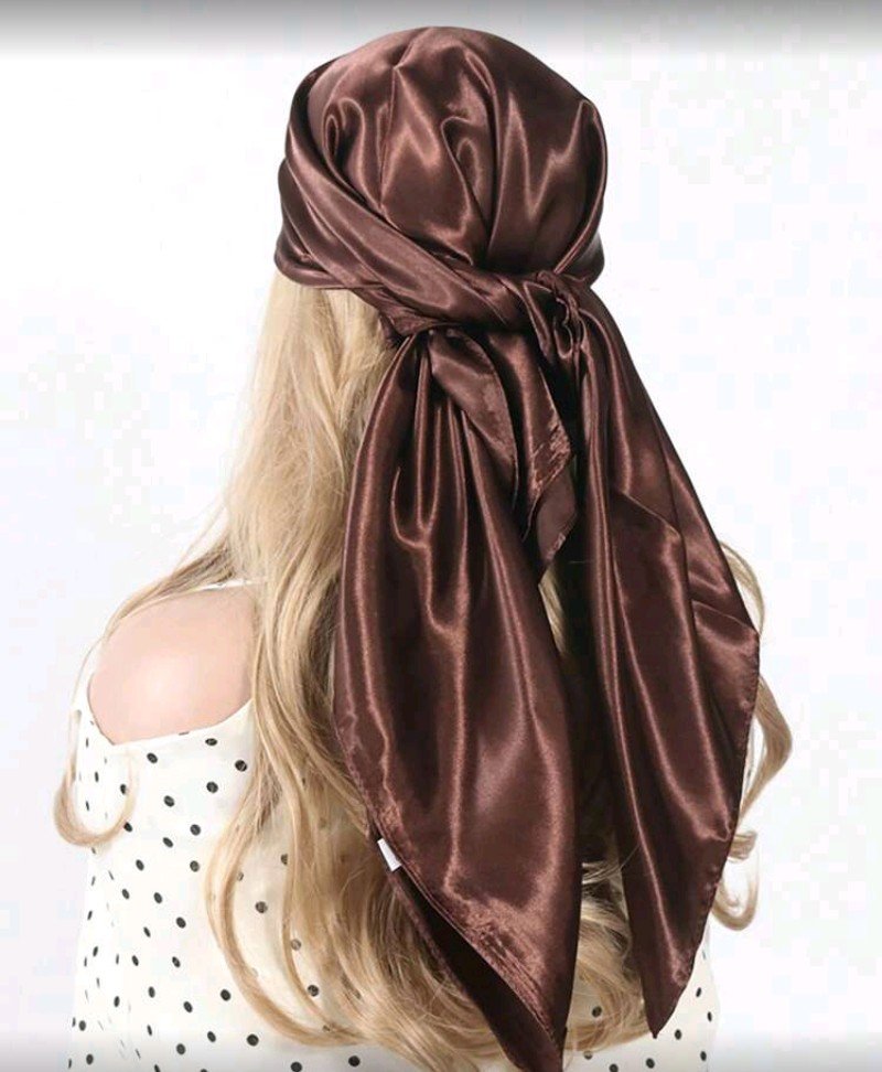 قطعة واحدة من وشاح مربع ساتان- وشاح رأس قابل للتعديل، مناسب لرمضان، تصميم خفيف الوزن بربطة دائرية بني إكسسوار أزياء شرقي متوسط النمط، نسيج ناعم أنيق